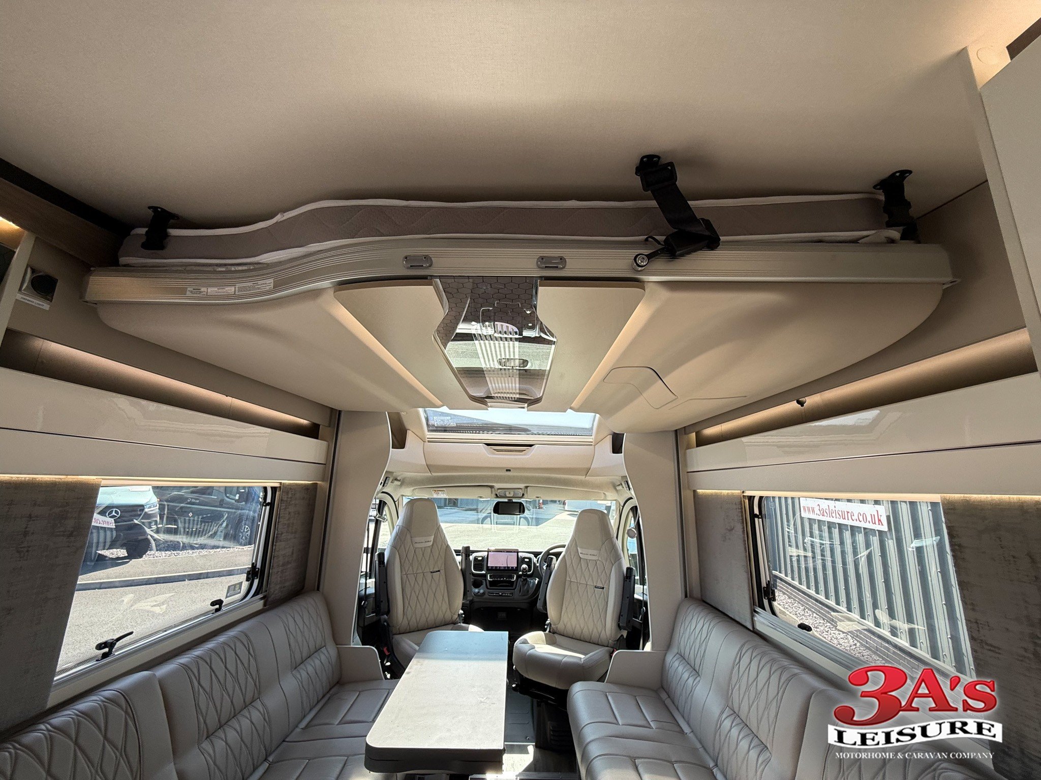 - Electric drop down bed above seating group